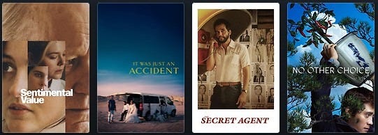 Variety has updated their daily predictions so far this awards season, and today’s two films, the Norwegian Joachim Trier directed Sentimental Value and Panahi’s It Was Just an Accident made the fifteen film Oscar shortlist which came out on December 16th. I’d like to believe that Brazil coming off hot from 2025’s win, will garner a spot for The Secret Agent (which was amazing) and would love to see South Korean master Park Chan-Wook finally get a nod for No Other Choice in the final five selection slates to be revealed on January 22nd. We’ll see if France can get back on track and figure out the mystery that is The Academy of Motion Picture Arts and Sciences Best International Feature. Both of today’s films were recently nominated for Best Drama at the 2026 Golden Globes and will be major players in the awards season. Onto the reviews!